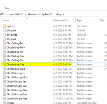 On DHCP server, go to C:\Windows\System32\dhcp\