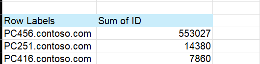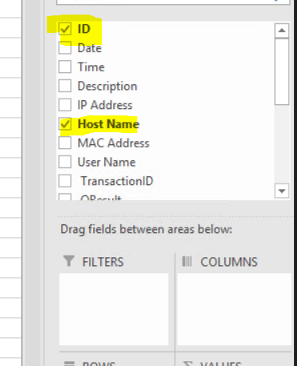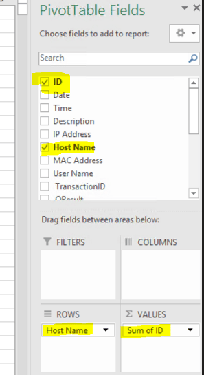 Adjust the excel fields of the pivot fields as shown to find the culprit machine (rogue device)
