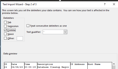 If you see Bad_address in the file, copy the contents and paste it into an excel using text import wizard. Chose the following option comma, then do next finish